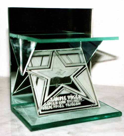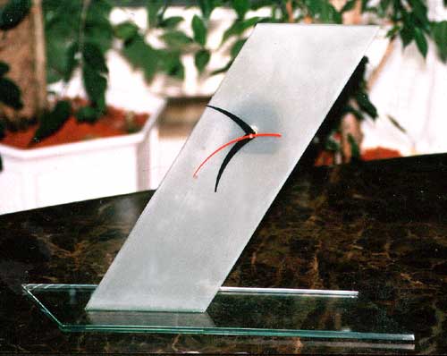 Arbeiten sind aus Floatglas, das stellenweise mit einer Sandstrahlung versehen